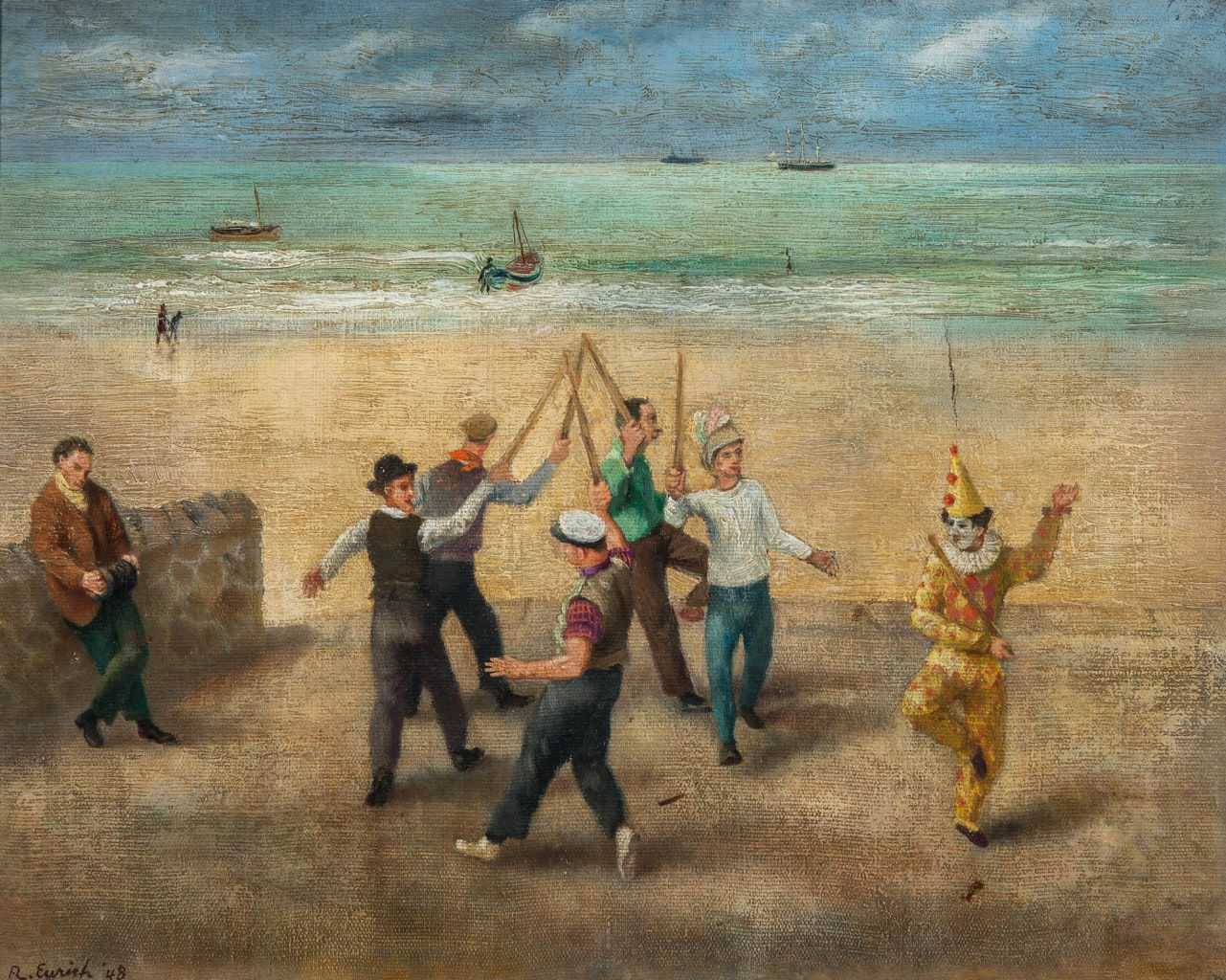 'Dancing Men' (1948), Oil on canvas, 40.5 x 51 cm, Collection: Leicestershire County Council Artworks Collection, County Hall, Leicester, Photo by Paul Carter, © Richard Eurich Paintings