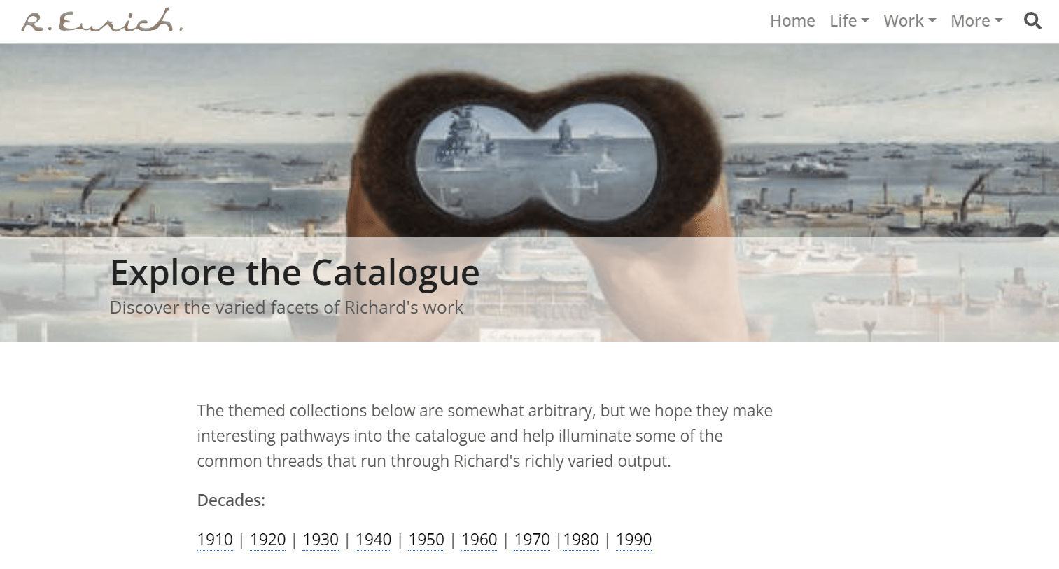 The idea was to create something a little different from other online catalogue raisonnés. We wanted to present the information in a friendly but authoritative way and to provide many avenues to explore Richard’s work. The search engine and the site itself needed to be fast to encourage exploration. We thought this platform might be used by other galleries and artists too.