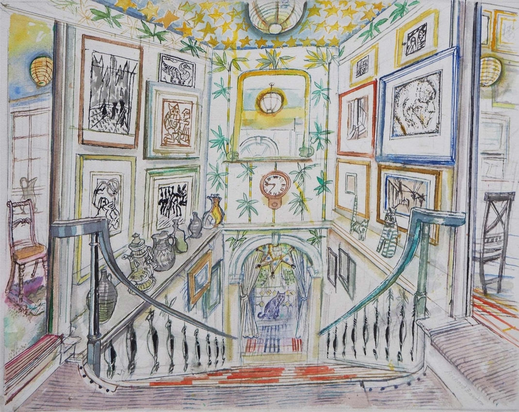 His cats came to define a sort of languid, luxuriating domesticity. These creatures would stretch out over a rug, or curl up in a basket, or walk stiff-leggedly across a room, or sit in a window. Sue and I stayed at his and Hattie's flat in Sydney Steet near Marylebone and visited their house in Hadleigh in Suffolk. There I saw the interiors that appeared in his pictures. The house was completely devoted to art and craftsmanship. There were fine English pots and bowls on display in a round-topped cabinet,