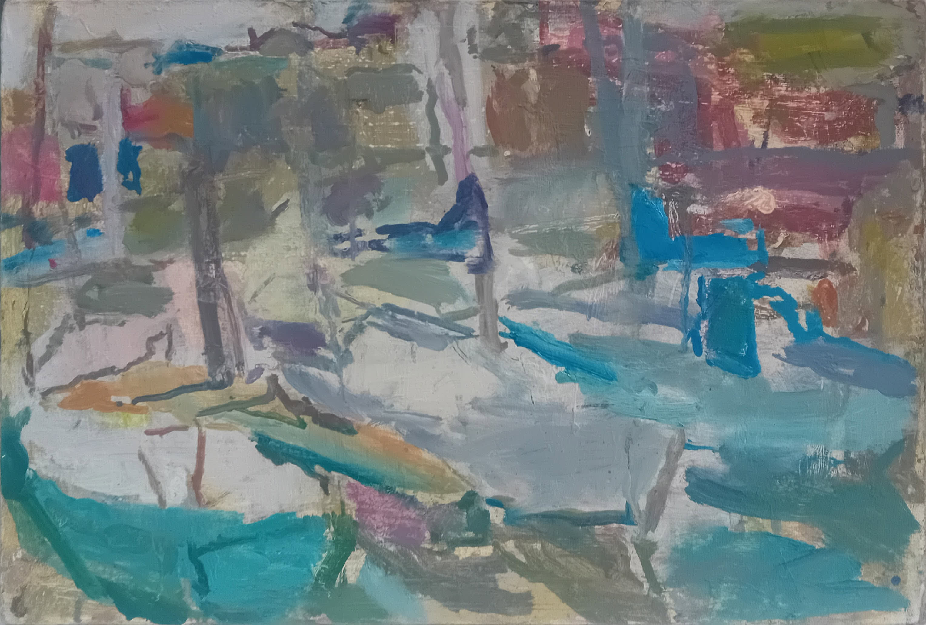 I bring my sketchbook, but it’s unsatisfying somehow, without paint. I bring my oil paints, a wooden pochade and a tripod. Together they weigh about a ton.