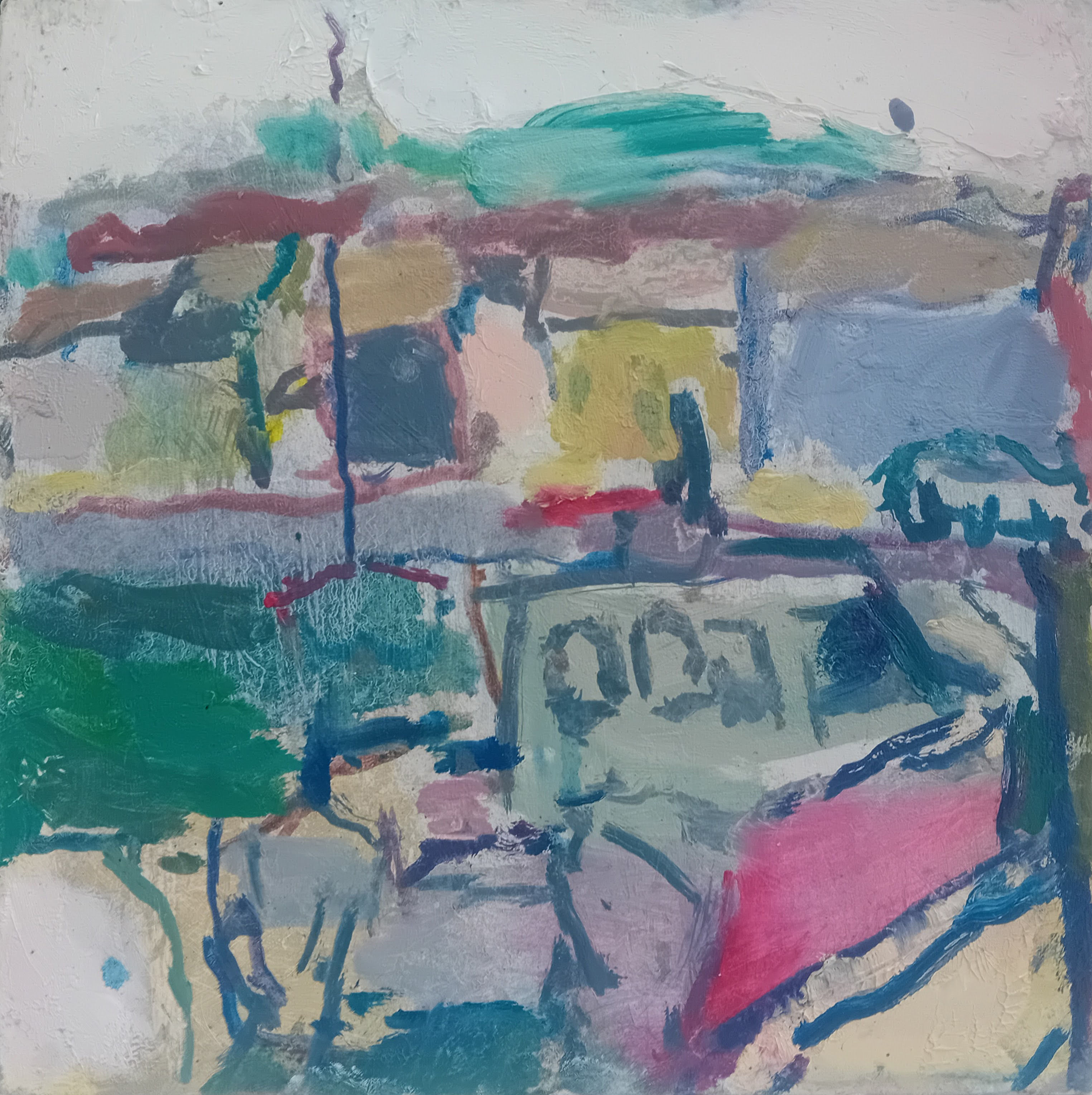 My painting isn’t going as well as I’d hoped. A woman asks me what I’m painting. I say, “The boat right in front of me.”