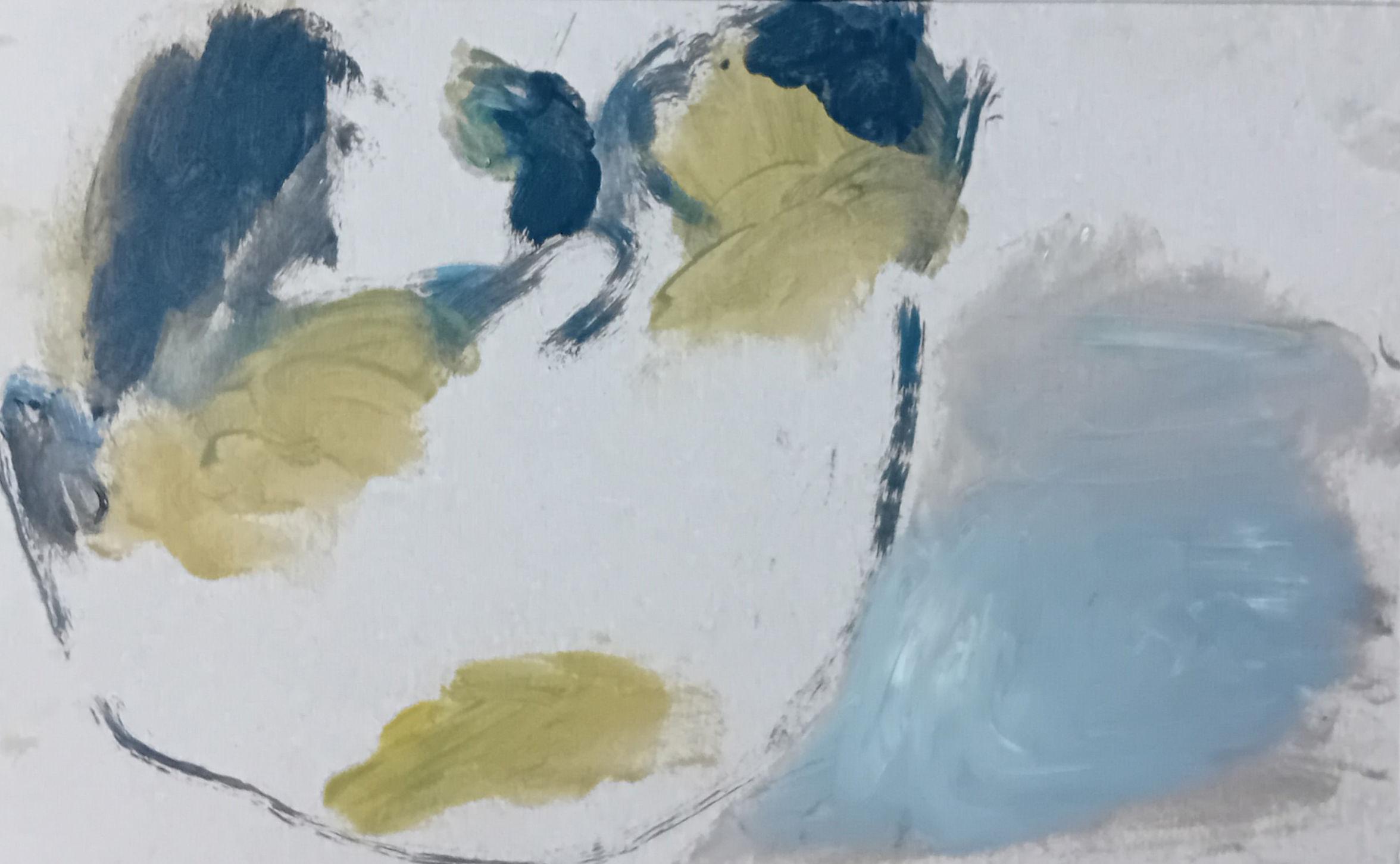 My friend has given up painting and wants to give me her oil paints. I say, “Are you sure?” She’s thought about it and is sure. I feel bad but accept anyway. Now I have some green paints and more blues.