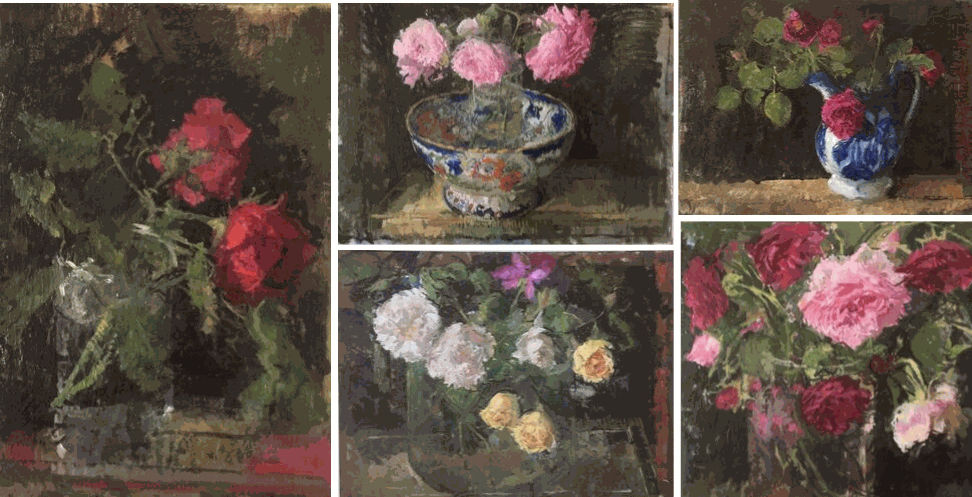 I have spent most of the last two years painting the roses that we have grown in our garden, plus a few from the old churchyard in our village. I had been thinking for a long time about painting them. From the moment when the first buds appear to the end of their flowering, the overblown petals have a lovely fragility.