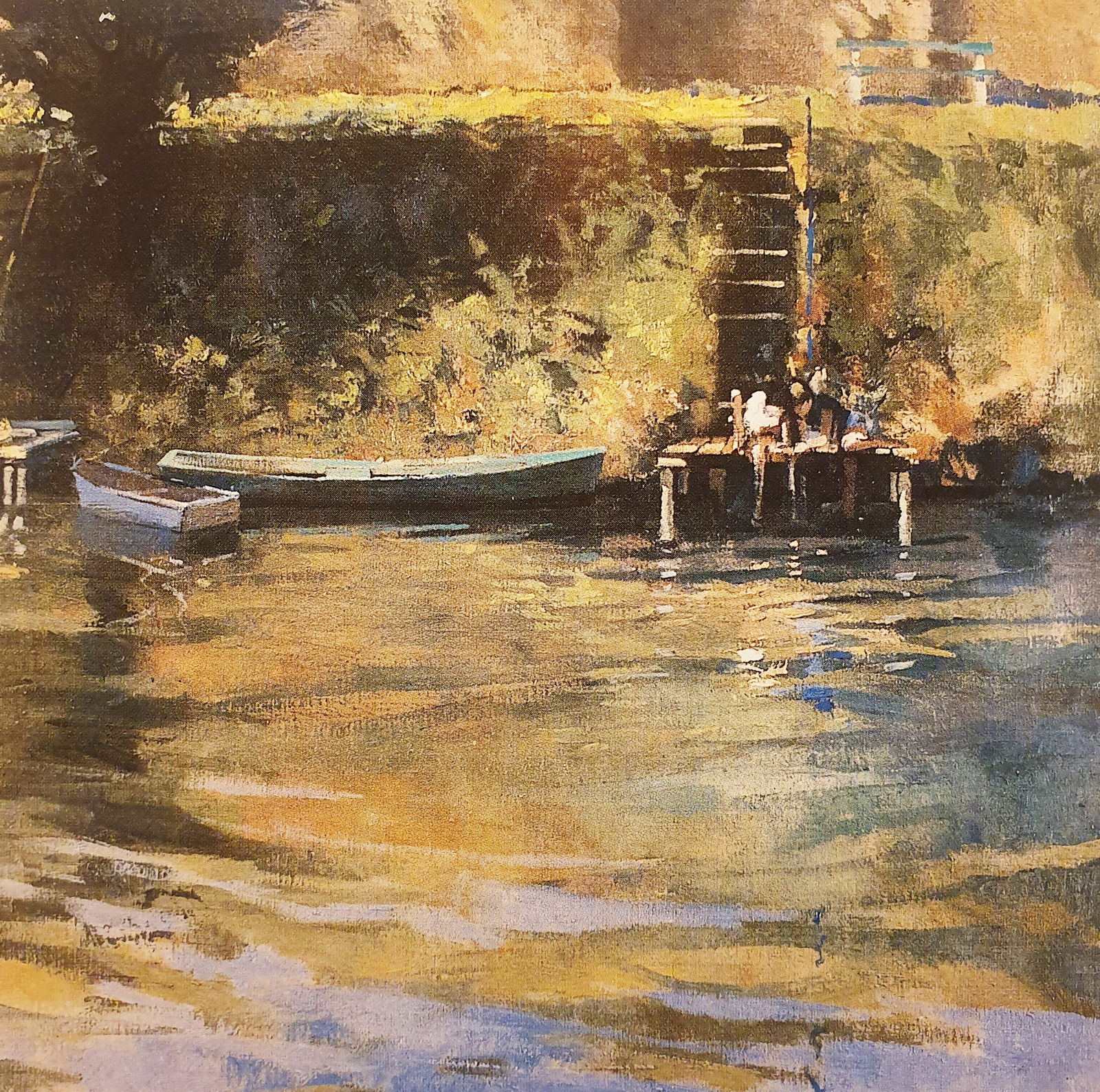 "Bob had enormous enthusiasm for painting and great energy. Bob and Sue were welcoming and generous. 'Painting with Bob' was fun but exhausting. He did not waste painting time, and while I was laying out a few tubes of paint and looking at a blank canvas, Bob had completed a painting and numbered it. He was so proud to be part of the New English family."